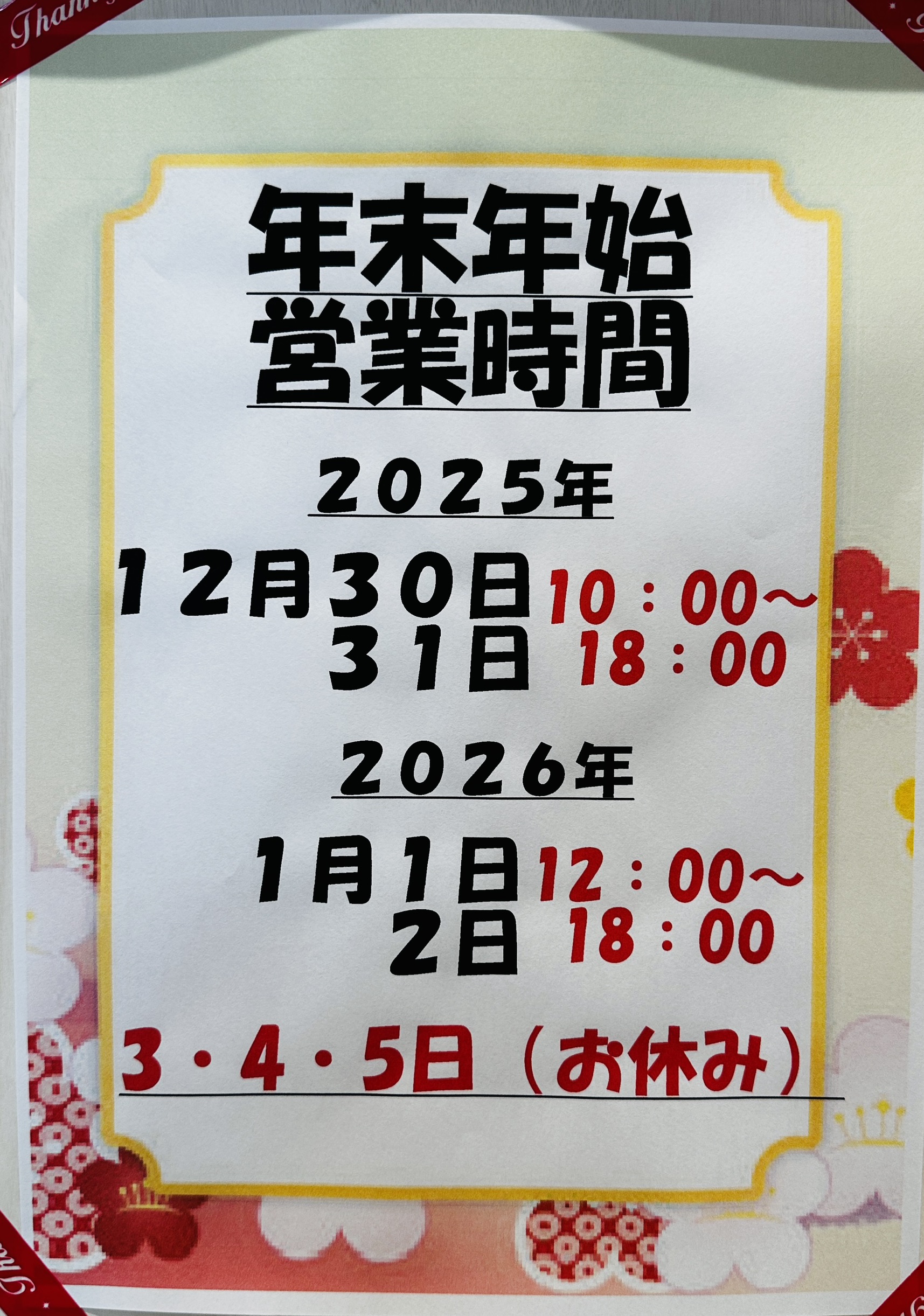 2025.12.23いつもご利用いただき、誠にありがとうございます。